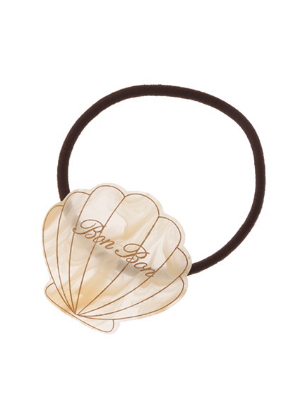 貝殻ワンポイントのヘアゴム。マーブルカラーで水着シーンにオススメの1つ。髪を結んで夏らしく爽やかに♥