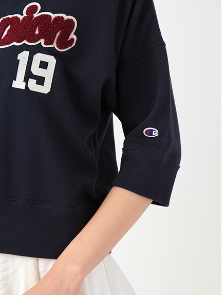 立体的な『Champion』ロゴ。袖にはチャンピオンのロゴマーク付き。