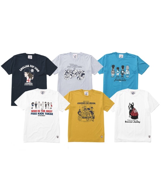 2015SS新作は、サッカージャンキーで人気のアーカイブイラストTシャツ。全6種類のデザインで、フットボールファンなら見逃せないアイテムになっていますよ♪