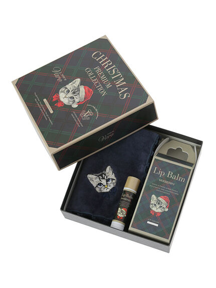 「SCENT OF Varo 【sweet 12月号掲載】LIMITED BOX」は、クリスマスコフレSと同じリップバームとタオルハンカチがセットという点は同じですが、タオルハンカチが猫のイラストだけでなく、アルファベットからも選べるのが特徴。大切なパートナーの名前に合わせて選べば、喜んでもらえること間違いなし!