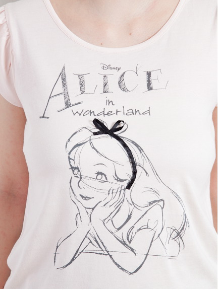 繊細なタッチで描かれたアリスデザインのTシャツ。フリル袖なので、1枚でも可愛く着こなせます。サイズコンシェルジュもご用意♪