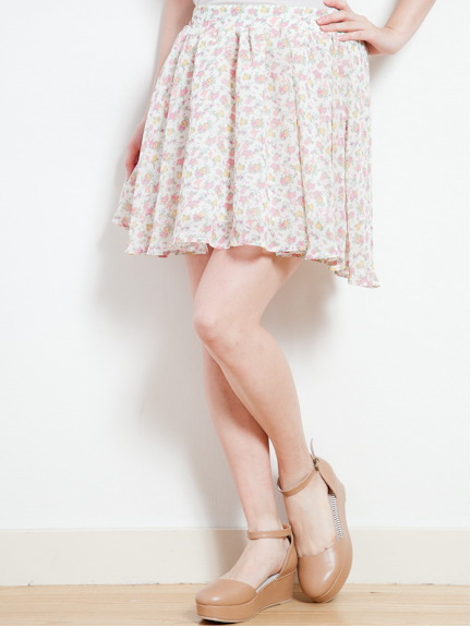 アリスのシルエットがさりげなく入った、花柄スカート。フレアタイプなので、爽やかに着こなせます♡