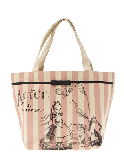アリスのストライプ×クラシカルデザインのトートバッグ。A4対応サイズが嬉しい、ラグランリボンがポイントのバッグです♥